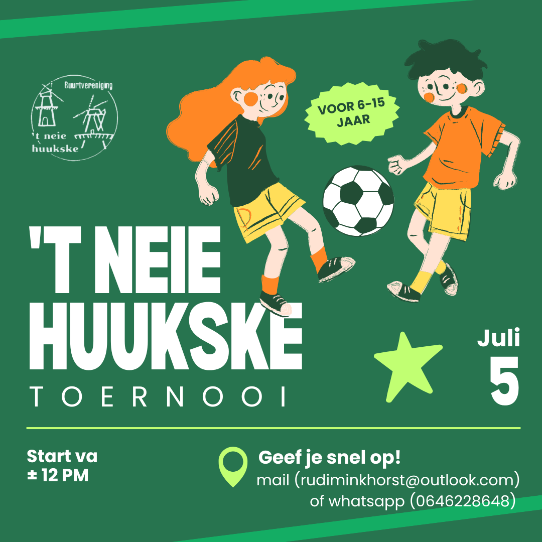 Ontdek de vaste activiteiten die 'T Neie Huukske organiseert, waaronder het voetbal toernooi, Pasen, apres ski party, buurt BBQ en Halloween. Lees meer over wat deze evenementen inhouden en mis geen enkele kans om deel te nemen aan onze activiteiten! Hou deze pagina dus goed in de gaten!